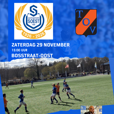 Aanstaande zaterdag speelt SO Soest de streekderby tegen onze vrienden uit Baarn; TOV. De laatste thuiswedstrijd van het roerige jaar 2025. De aftrap...