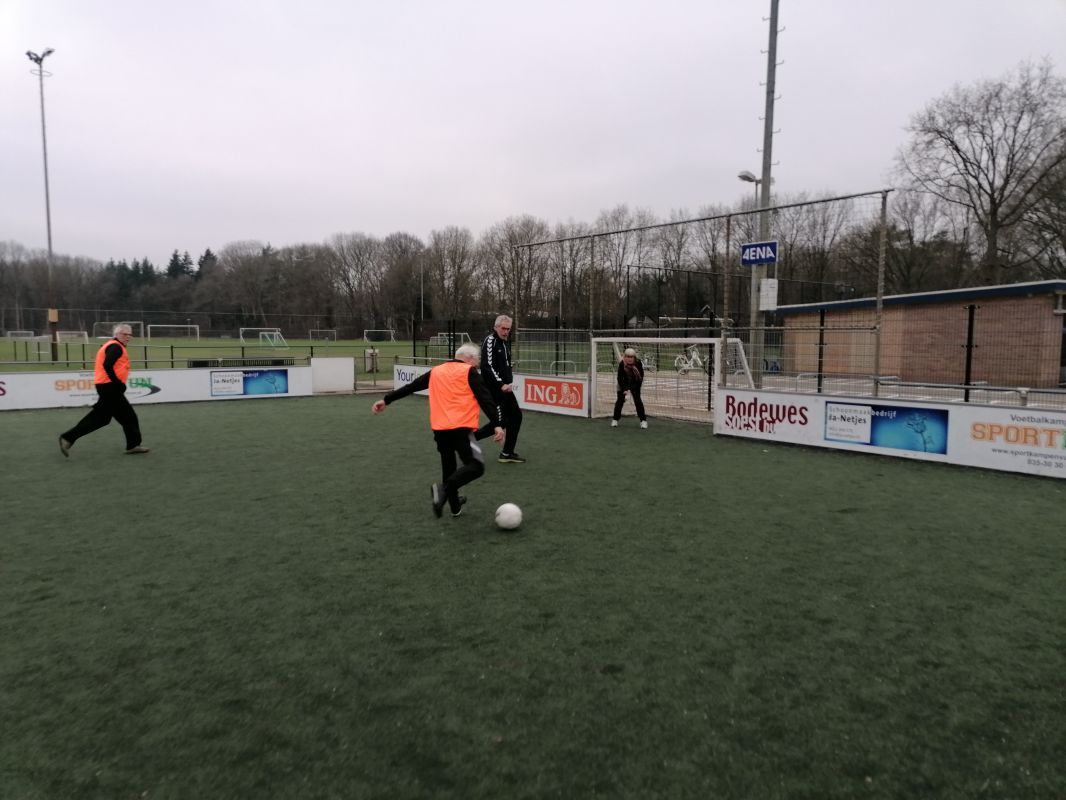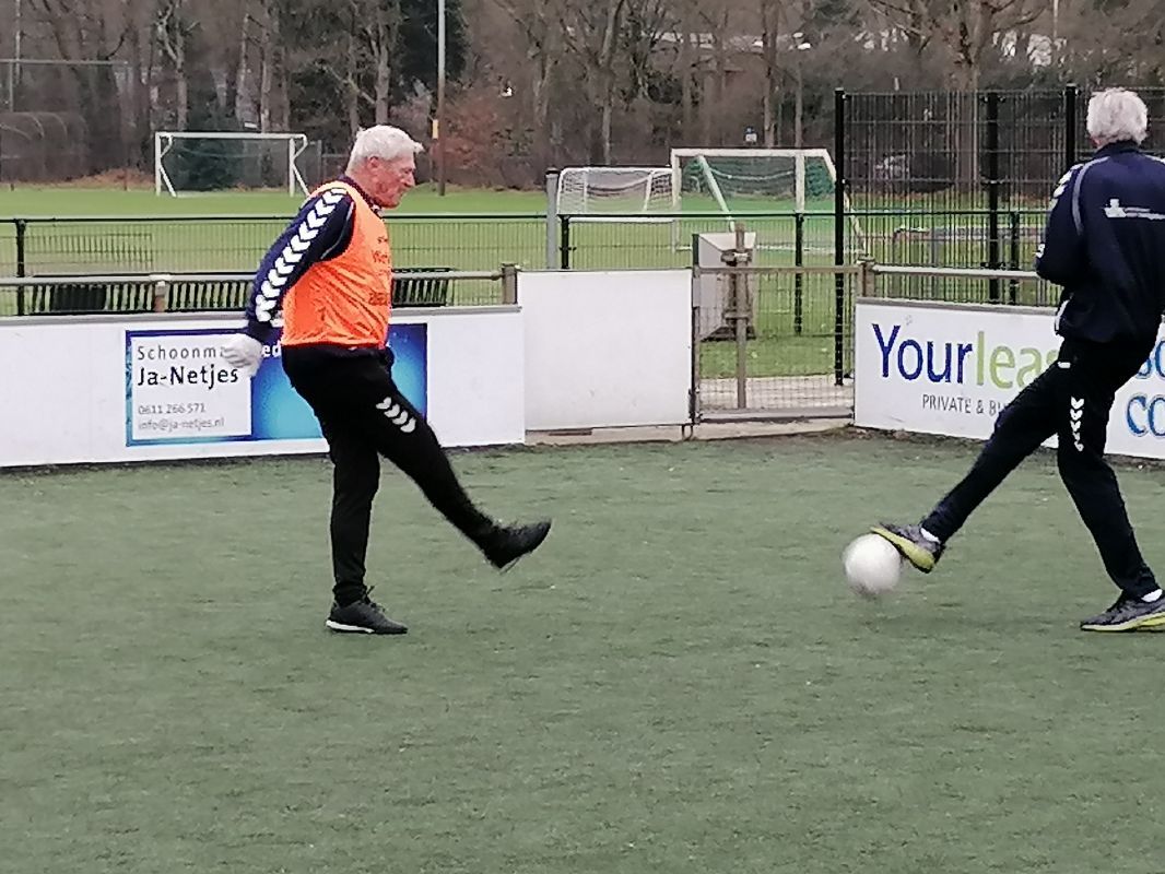 Piet Bokhoven (69) valt op door zijn fluwelen balbehandeling en oog voor het spel. Met een passje zet hij een medespeler vrij voor het doel en nadat deze de open kans op briljante wijze om zeep helpt is er geen man overboord. Op naar het volgende moment. Gerard van den Breemer, deze middag de spelleider, trainer en regelaar, roept na een uur voetballen: ,,Winnende goal...!" De ploeg die het laatste doelpunt maakt is, ongeacht de tussenstand, de winaar van deze middag.
