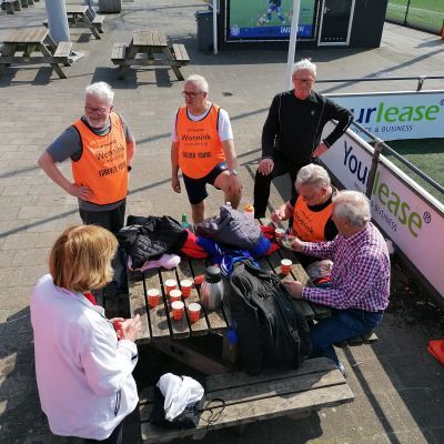 Piet is blij met de begeleiding rondom het wandelvoetbal: ,,Er is altijd iemand van de club bij die alles regelt en ook de warming-up leidt. Met Hardy Wold, Frans Hoeke en Gerard van den Breemer hebben we kundige begeleiders. Ik kijk er elke weer weer naar uit. Weer of geen weer, dat is nooit een excuus om weg te blijven."