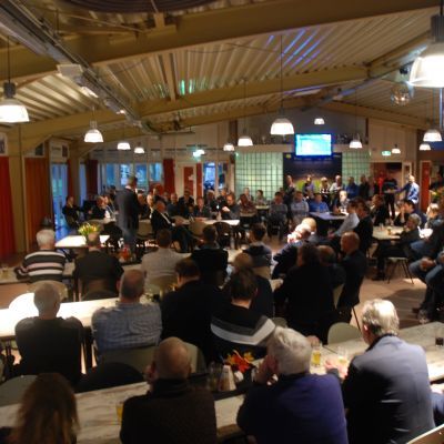 Jansma boeit het gehoor een uur lang. Hierna schuiven de Soester ondernemers aans voor een winterse maaltijd.