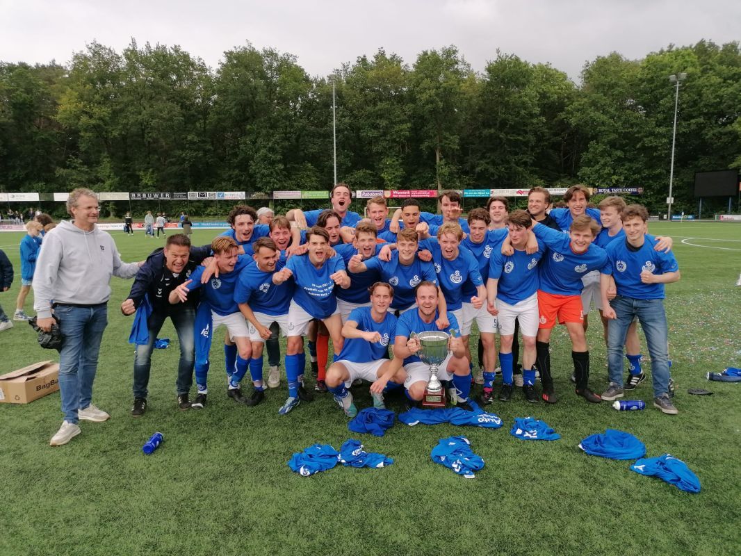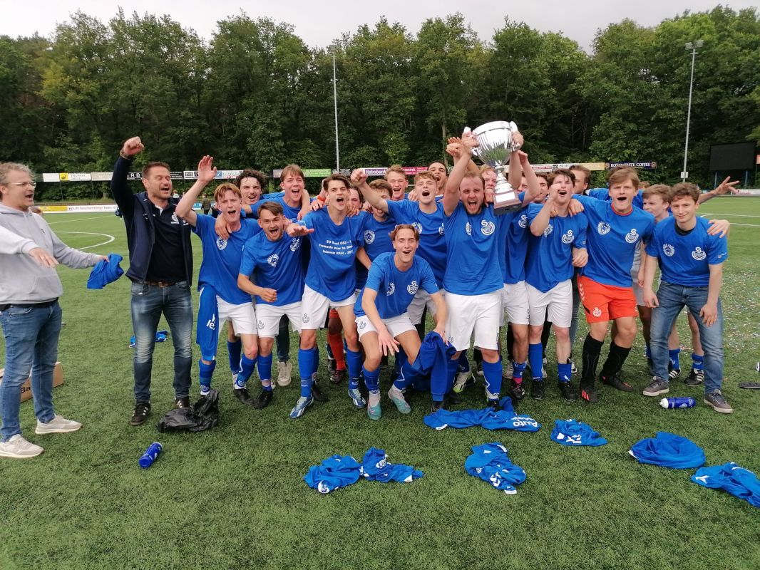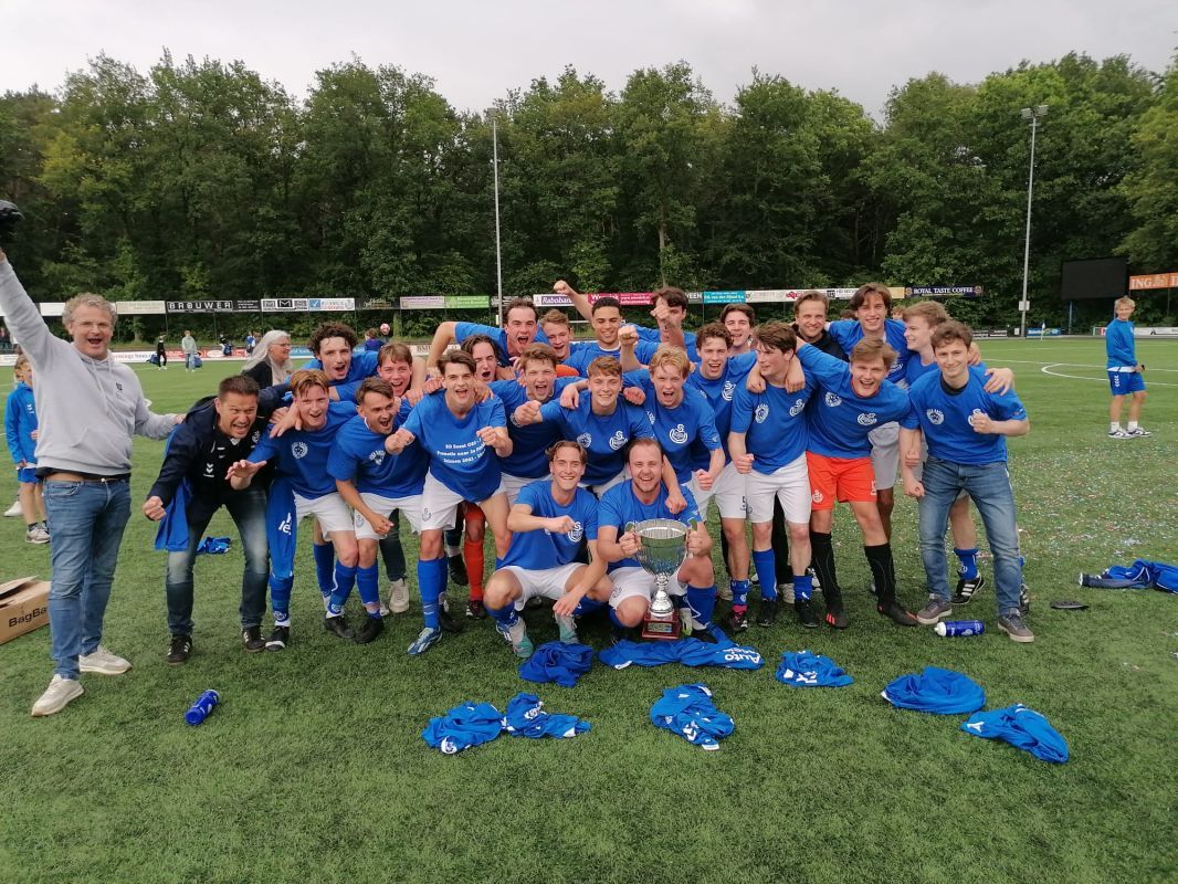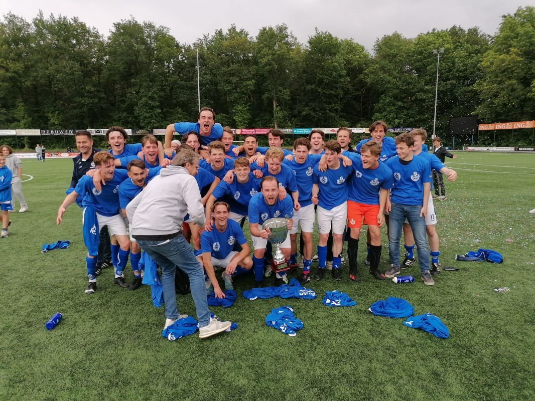 Gefeliciteerd mannen. Aanvoerder Max Veen, die het publiek nog feilloos in spanning liet, gooide de kampioensbeker in de lucht. Een prachtig resultaat na een mooi seizoen.