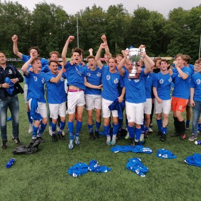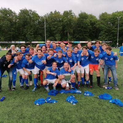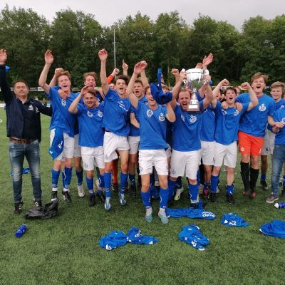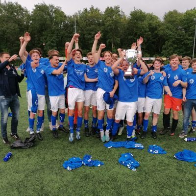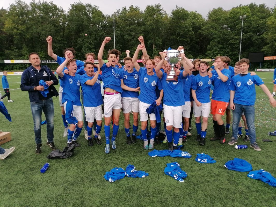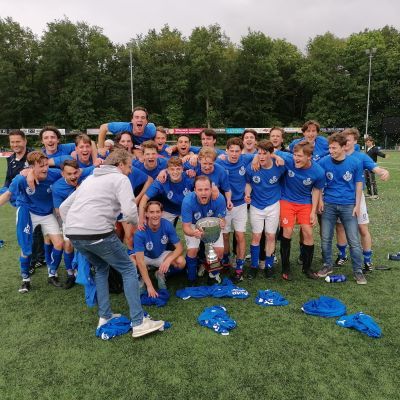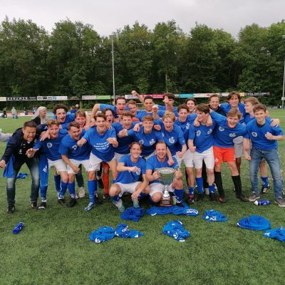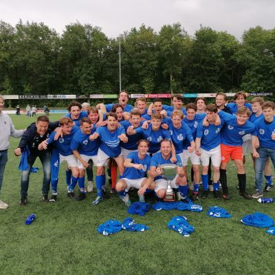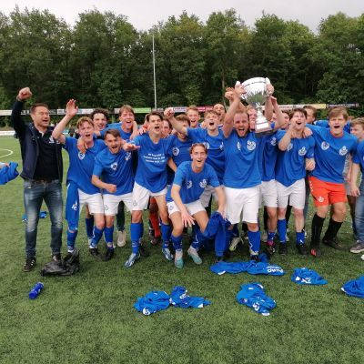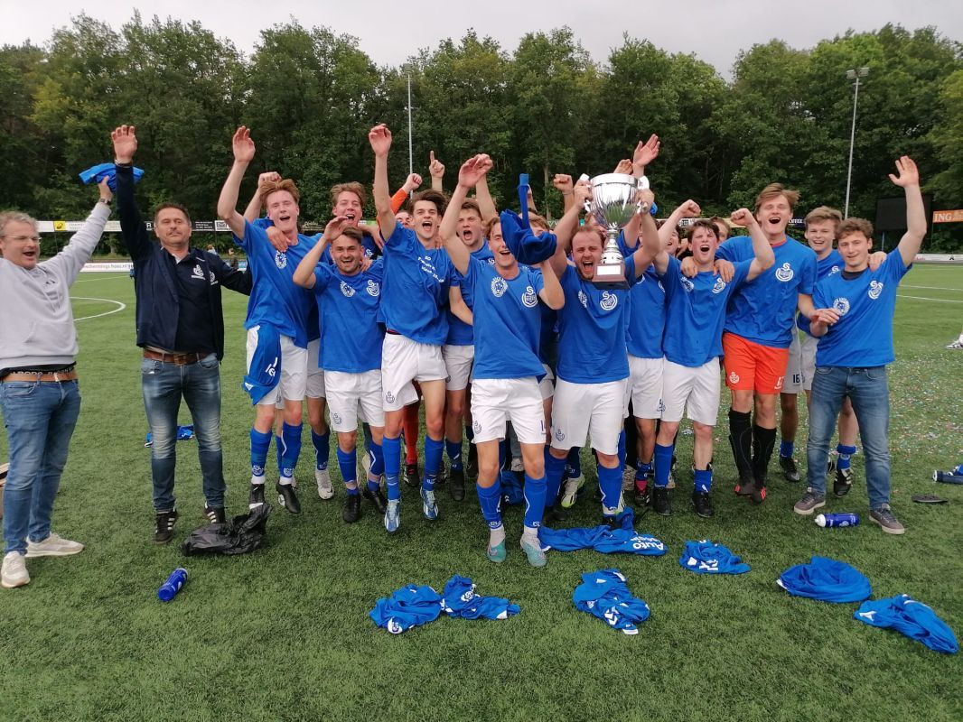 Gefeliciteerd mannen. Aanvoerder Max Veen, die het publiek nog feilloos in spanning liet, gooide de kampioensbeker in de lucht. Een prachtig resultaat na een mooi seizoen.
