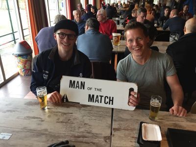Dan nu over voetbal. De zwaluwtjes uit Utrecht presteren opvallend goed. Normaal gesproken is deze club uit Utrecht een kandidaat voor de grauwe onderkant van de middenmoot echter dit jaar staan ze in de top vijf. In principe geen probleem voor Soest 3, zeker niet na de eclatante overwinning aan de Bosstraat en dat was het vandaag ook niet. Het was even wennen in de nieuwe samenstelling en dat zorgde ervoor dat de Zwaluwtjes even mochten ruiken aan een driepunter. Een twee nul voorsprong zorgde er niet voor dat Soest 3 uit haar evenwicht gestoten werd. Sterker nog, een weergaloze comeback volgde. Het was de hoovercraftman Fabian die zonder zijn hoovercraftschoenen de bal eens opportunistisch klassiek op de pantoffel nam en de bal van exact 21,5 meter in het doel schoot. Dit was de opmaat voor een weergaloze overwinning. De gastspelers waren warmgedraaid en Soest 3 ging als een geolied marinierskorps op zoek naar de gelijkmaker. Het was Jos Klapschaats die de gelijkmaker binnen wist te werken en op het moment dat ik dit schrijf moet hij weer lachen omdat hij het niet was. Het was Jos Elbertse die de gelijkmaker op aangeven van Gerdo wist te scoren en dat was loon naar heel hard werken. De zwaluwtjes waren rijp voor de sloop en de overwinning voor Soest 3 hing in de lucht. Nico mocht aanleggen voor een corner en hij wist topscorer Gerdo te vinden. Niks timmerbedrijf Kuenen maar Sloopbedrijf Kuenen was het deze zondag. De zwaluwtjes waren gesloopt en de overwinning was binnen. Een prachtige overwinning van het collectief waar Jos Elbertse het man of the match bord mocht ontvangen of weggeven. Van een afstandje had het technisch hart dit bord wat mij betreft ook mogen ophalen voor bewezen inzet.
