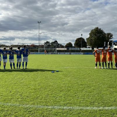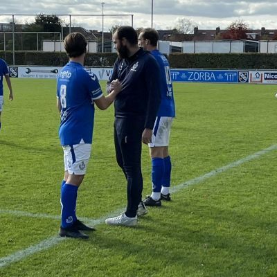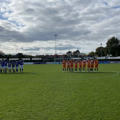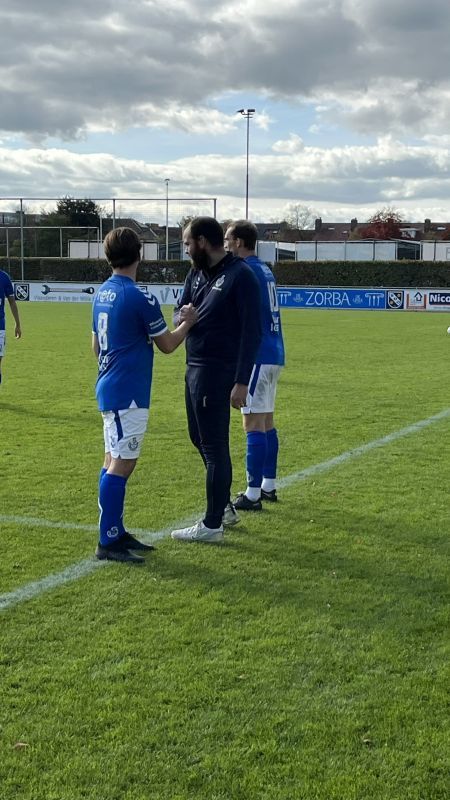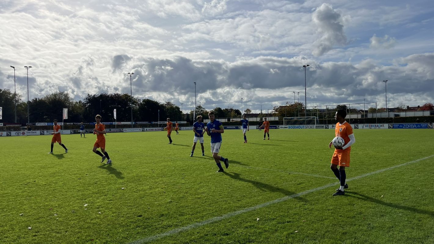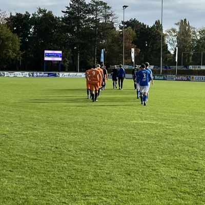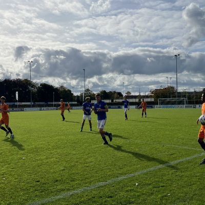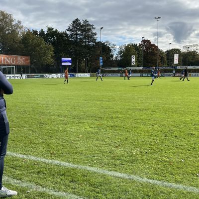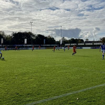 Een prachtige grasmat lag op ze te wachten in een heerlijk herfst zonnetje. Na een goede warming-up en een professionele opkomst op veld 1 werd er om 11:30 afgetrapt.