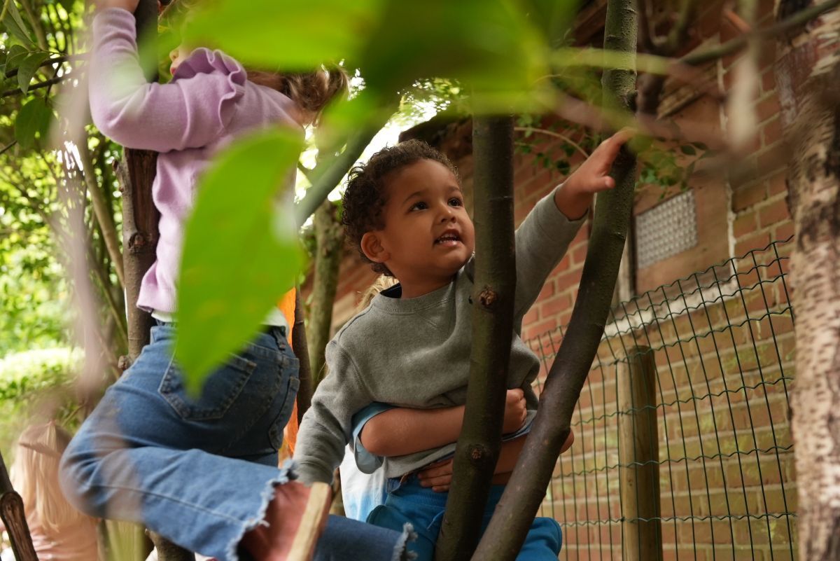 En aan de Driehoeksweg ontdekken kinderen de natuur van dichtbij. Omringd door groen en bos ligt hier een avontuurlijke tuin waar fantasie en spel samenkomen. In de kleinschalige groepen leren kinderen van verschillende leeftijden van én met elkaar.