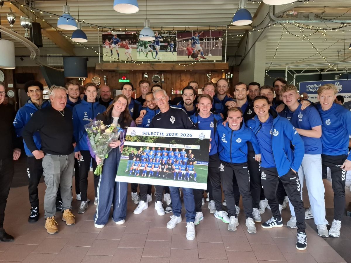 Afgelopen zaterdag overhandigde teamleider Wilfred Janmaat de jaarlijkse teamfoto aan Sanne Smeeing van Yourlease. Uiteraard ging Sanne samen met de selectie, de voorzitter en Benjamin van Asch op de foto.