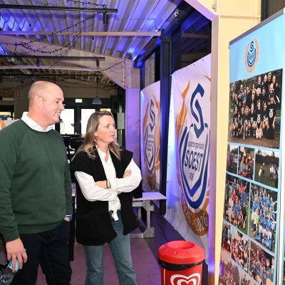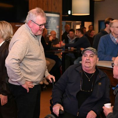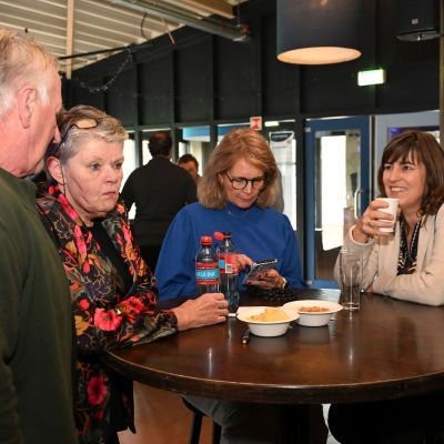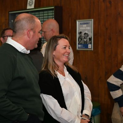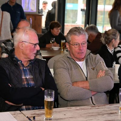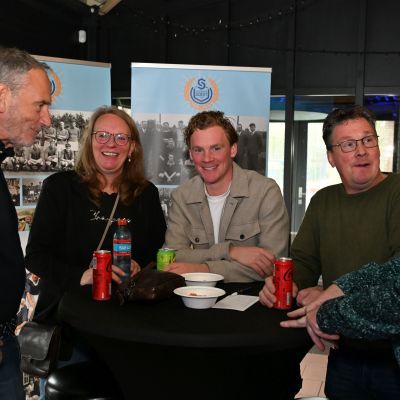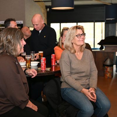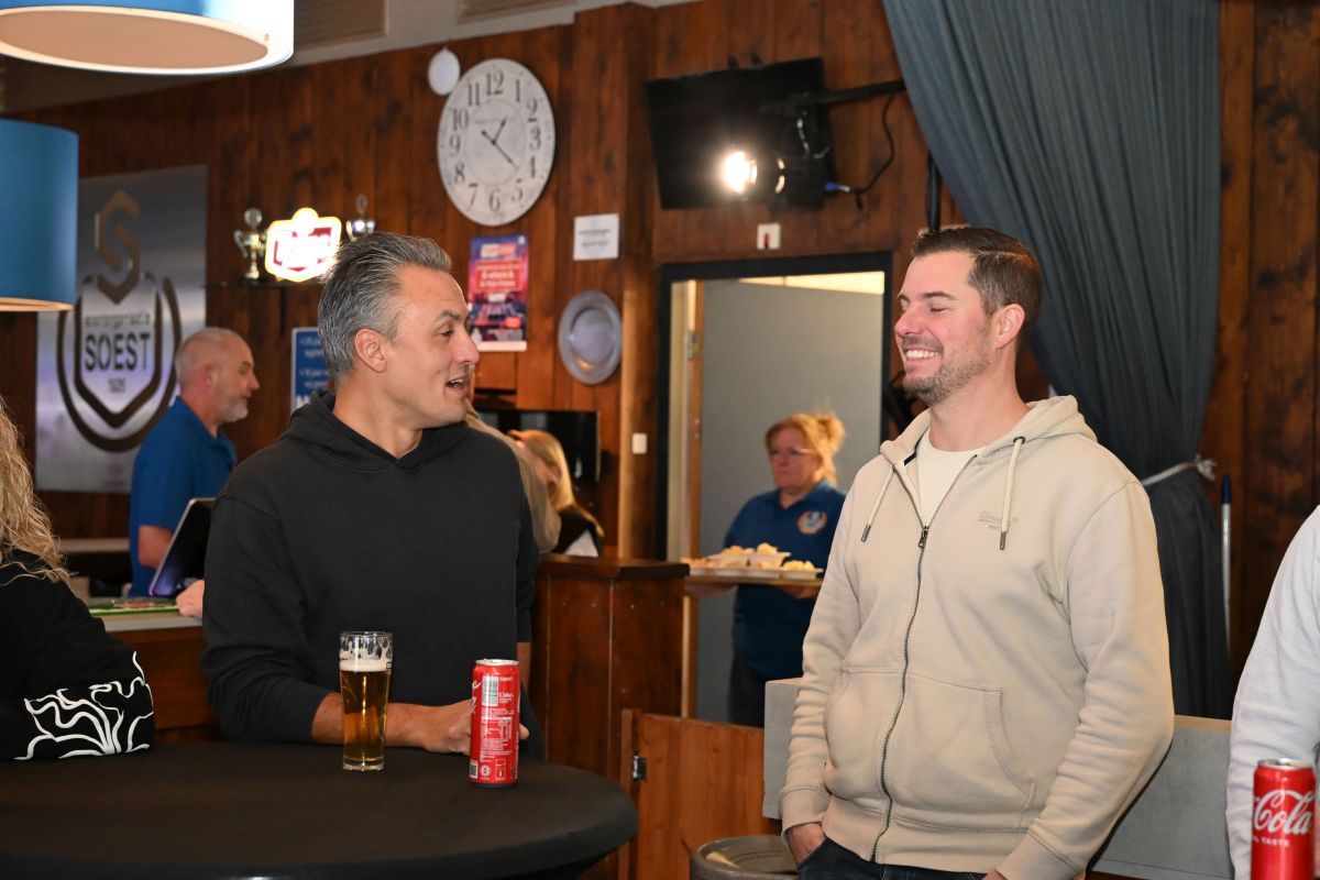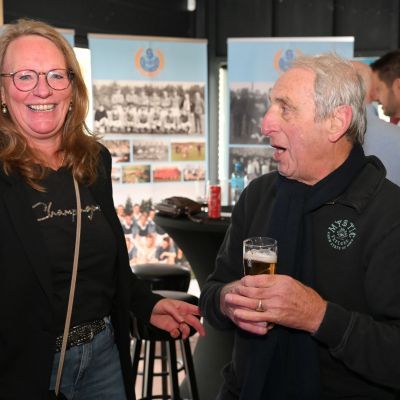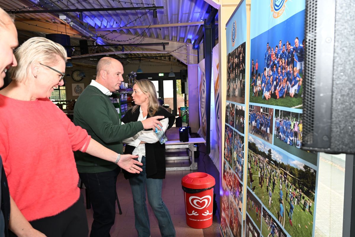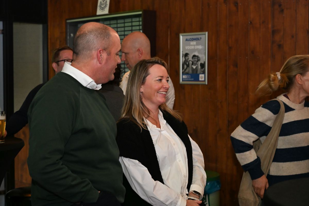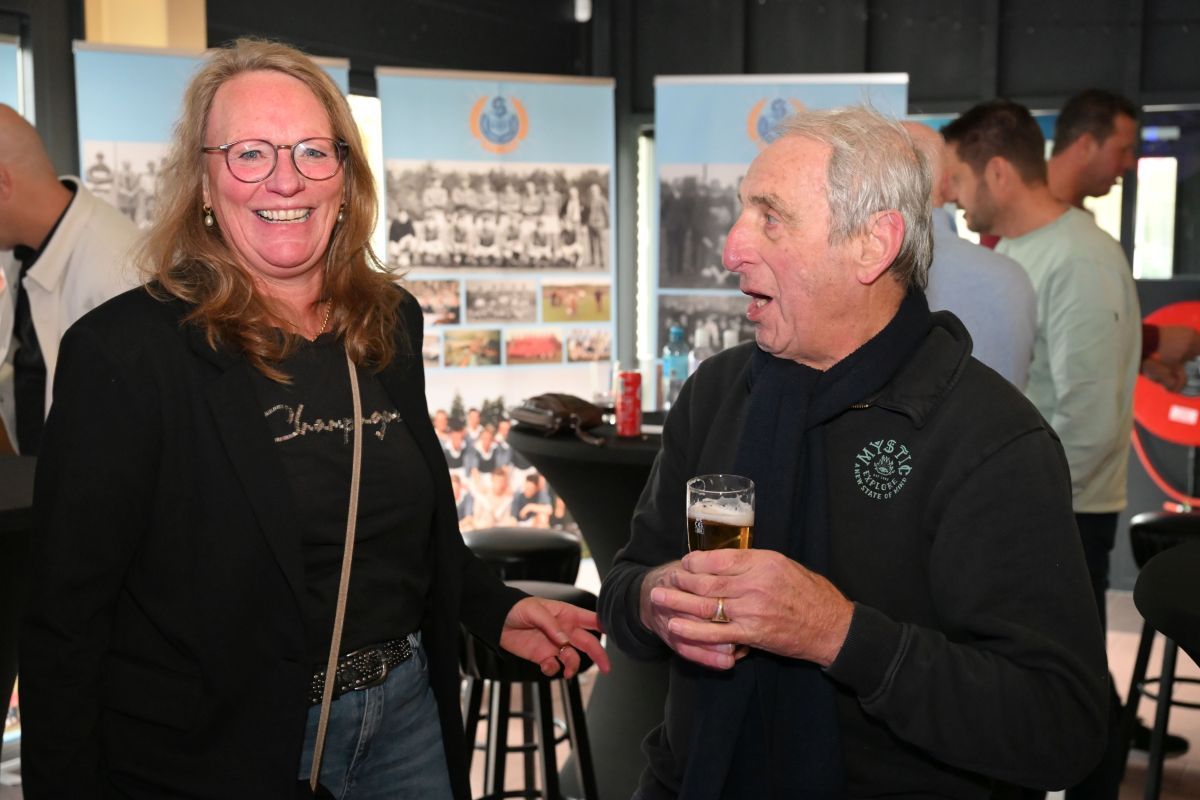 Na afloop bleef de kantine nog lang gevuld met gesprekken, herinneringen en toekomstplannen. Een proost hier, een knuffel daar, het was precies wat een aftrap moet zijn.
