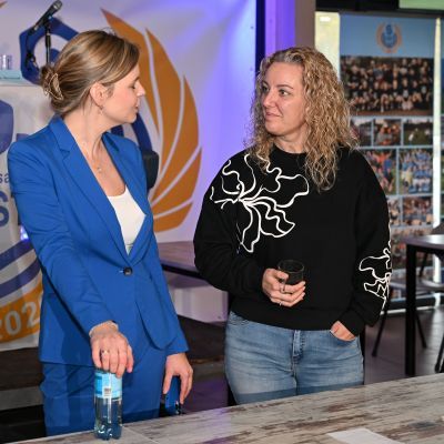 De slottafel draaide om de toekomst. Michiel Heijmans, Thijs Janmaat en Esther ten Haaf spraken over de ambities voor de komende jaren. Ook de vraag of samenwerking met andere clubs ooit nodig zou zijn, passeerde. Meningen verschilden, maar één sentiment kreeg de meeste instemming: ,,We blijven lekker blauw-wit.”