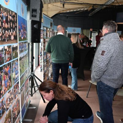Mireille van der Laan leidde de bijeenkomst en ontving een stoet aan gasten die ieder hun eigen hoofdstuk aan de clubgeschiedenis toevoegden.