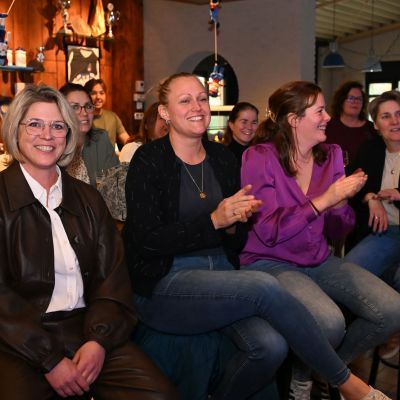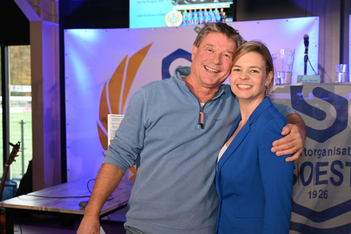 Het eerste gesprek ging over de ontwikkeling van het damesvoetbal bij SO Soest. Tamara Roedelof, Marloes Martens, Rachel Beijer en Karin Butzelaar vertelden hoe de vrouwentak voet aan de grond kreeg. Aan hun zijde zat trainer en Wim de Beer. Wim kennen we, naast Hans Zeggelaar, Jos van Let en Wim Dijkman, als een van de pioniers van het vrouwenvoetbal. De zaal hoorde hoe de eerste jaren vol doorzetten zaten, maar ook hoe groot de groei inmiddels is: vijftien procent van de leden is vrouw, wat met applaus werd begroet.