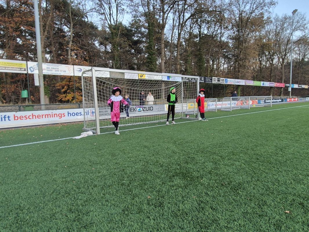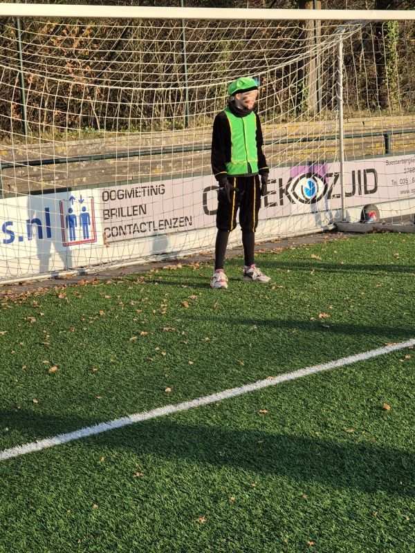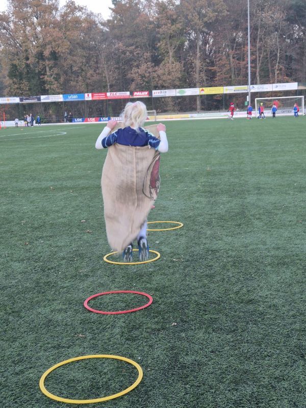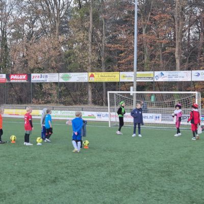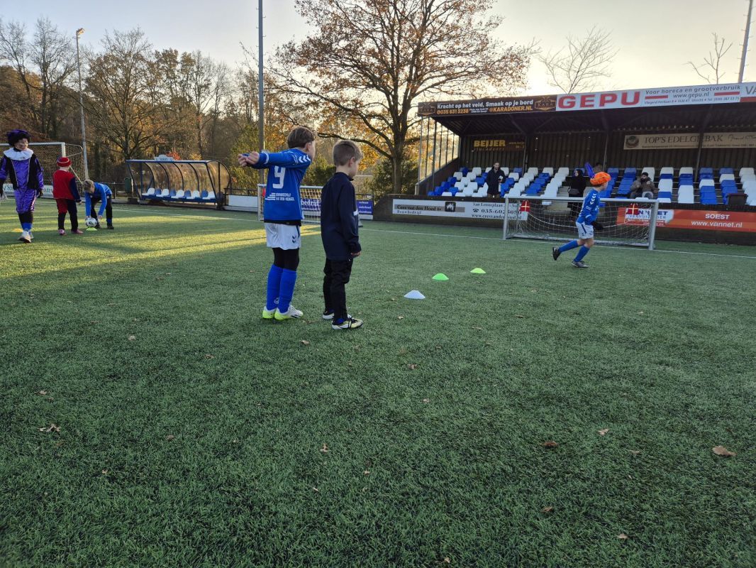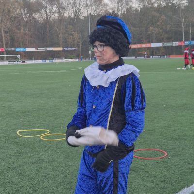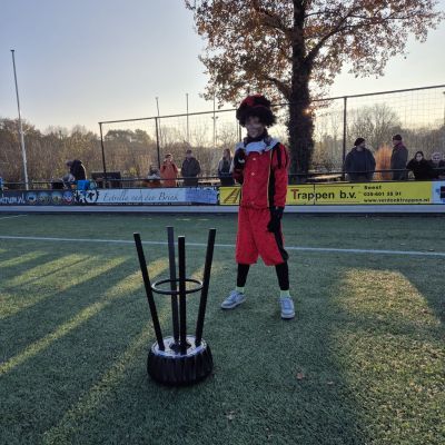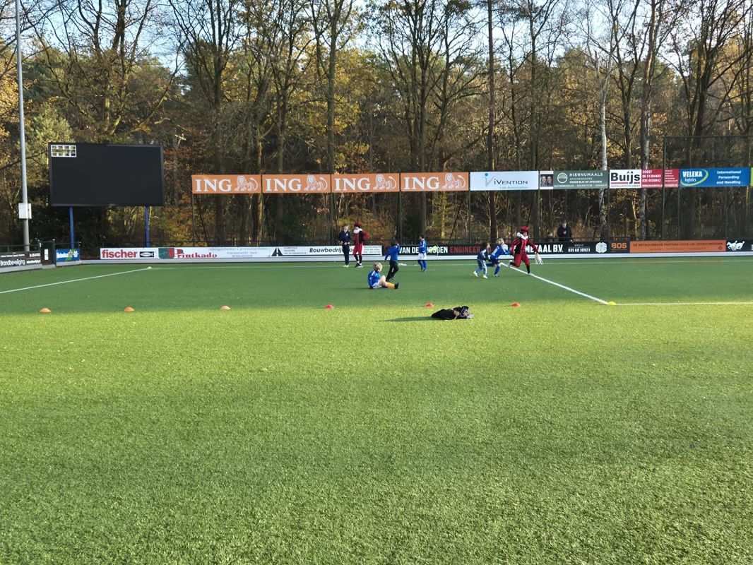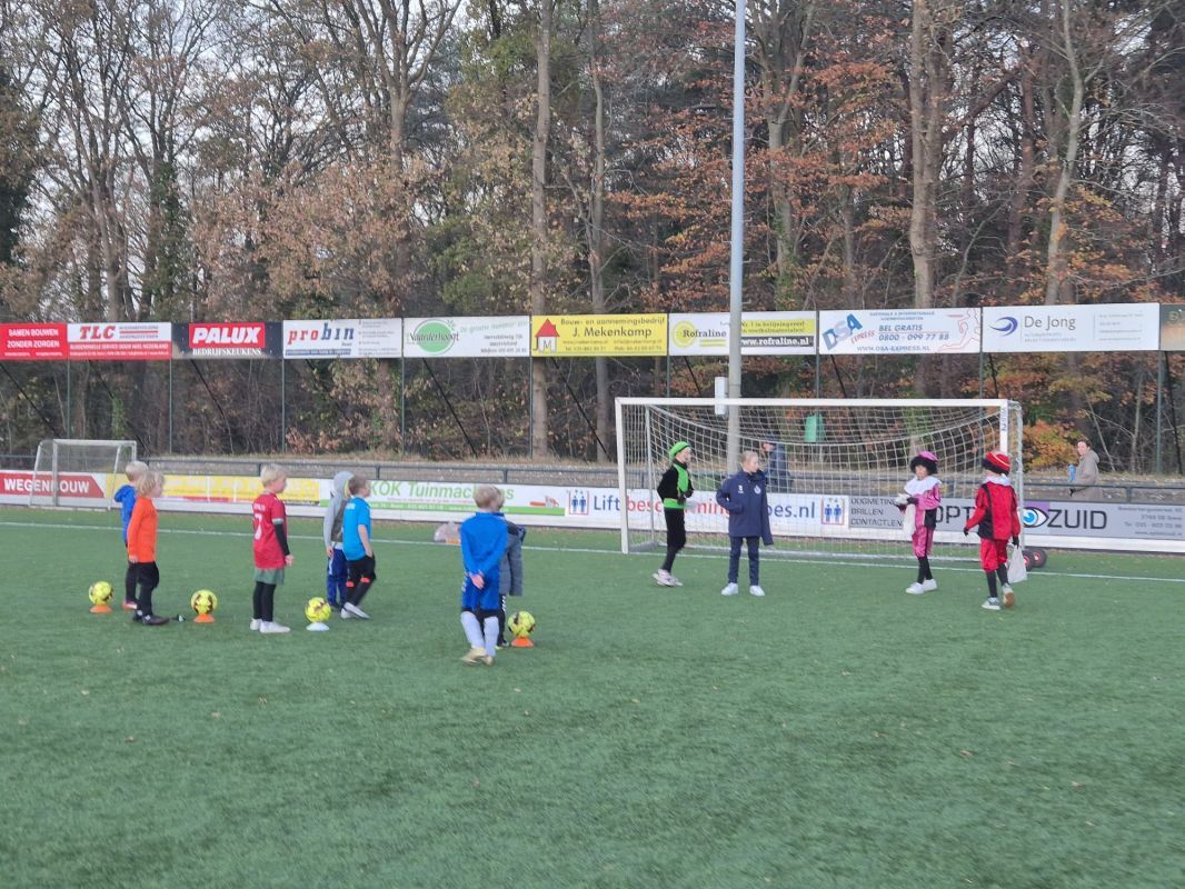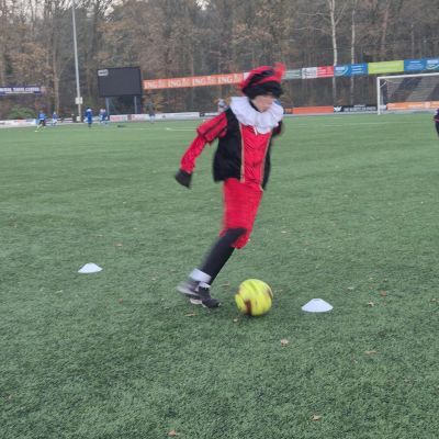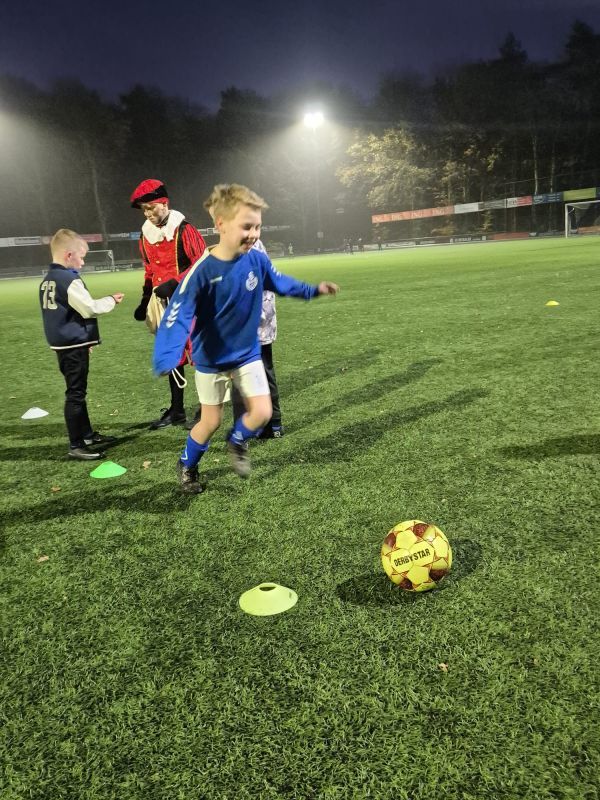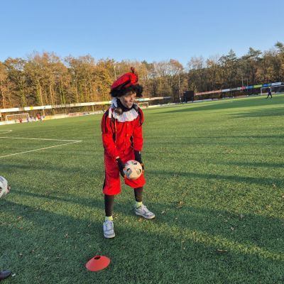 Dit jaar had Sinterklaas ook weer een hele groep kleine hulppieten meegenomen. Zij kregen van ons een korte voetbaltraining – en in ruil daarvoor gaven zij ons een echte Pieten-training, compleet met springen, rennen en slalommen.