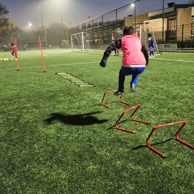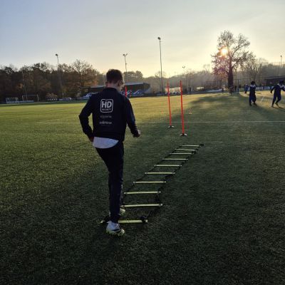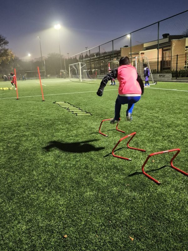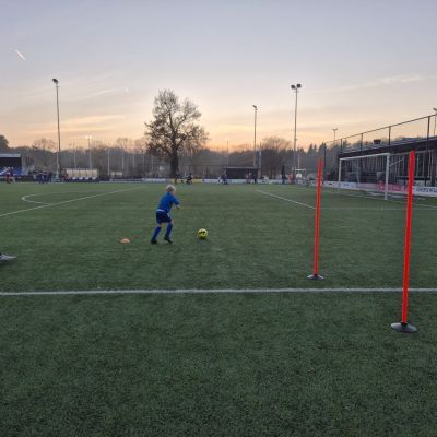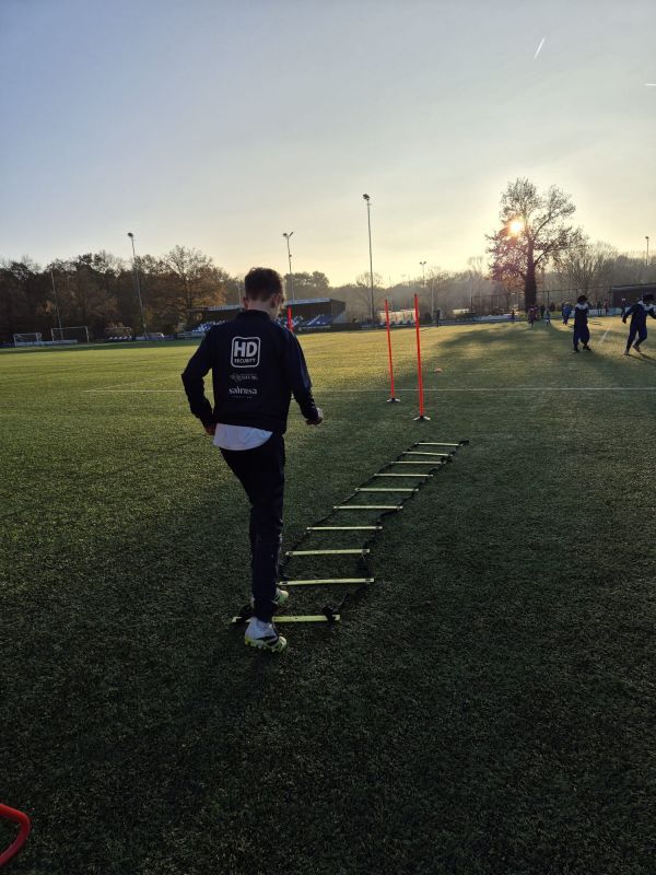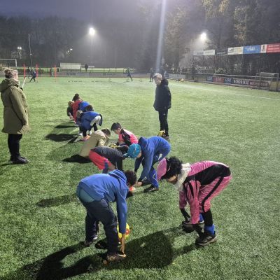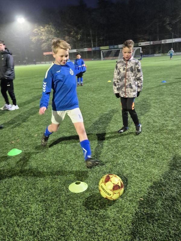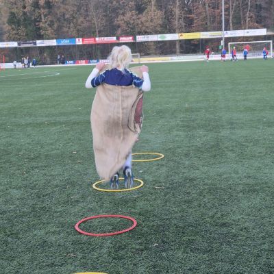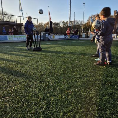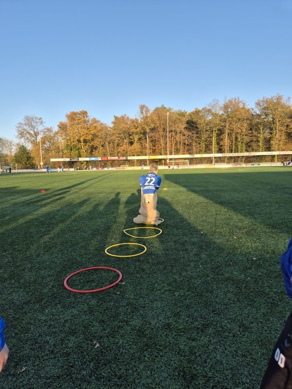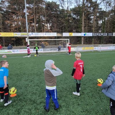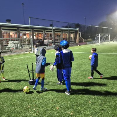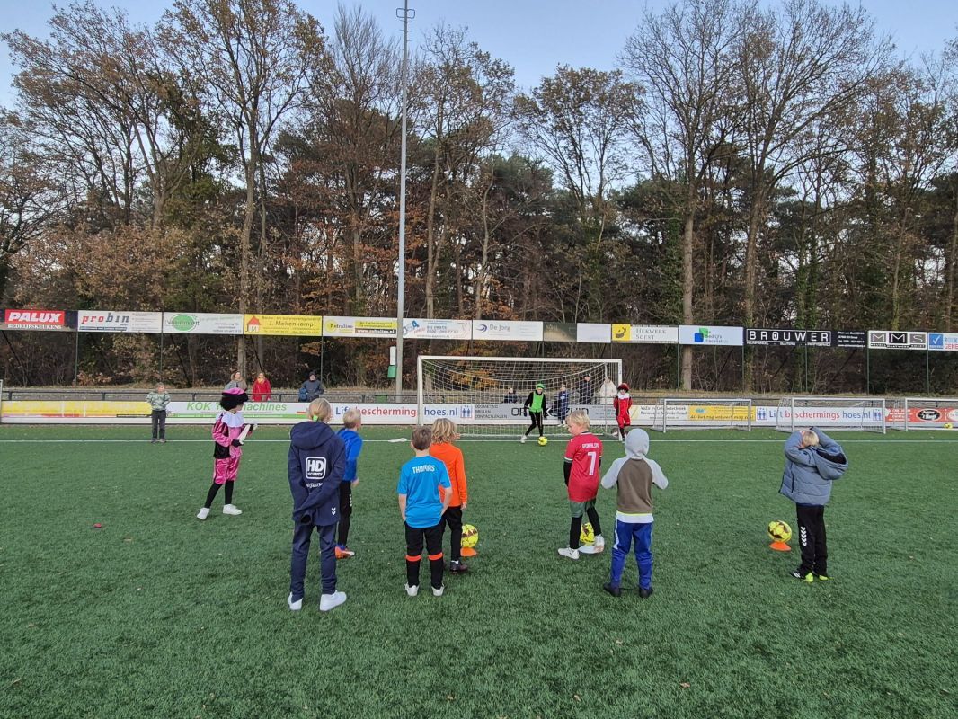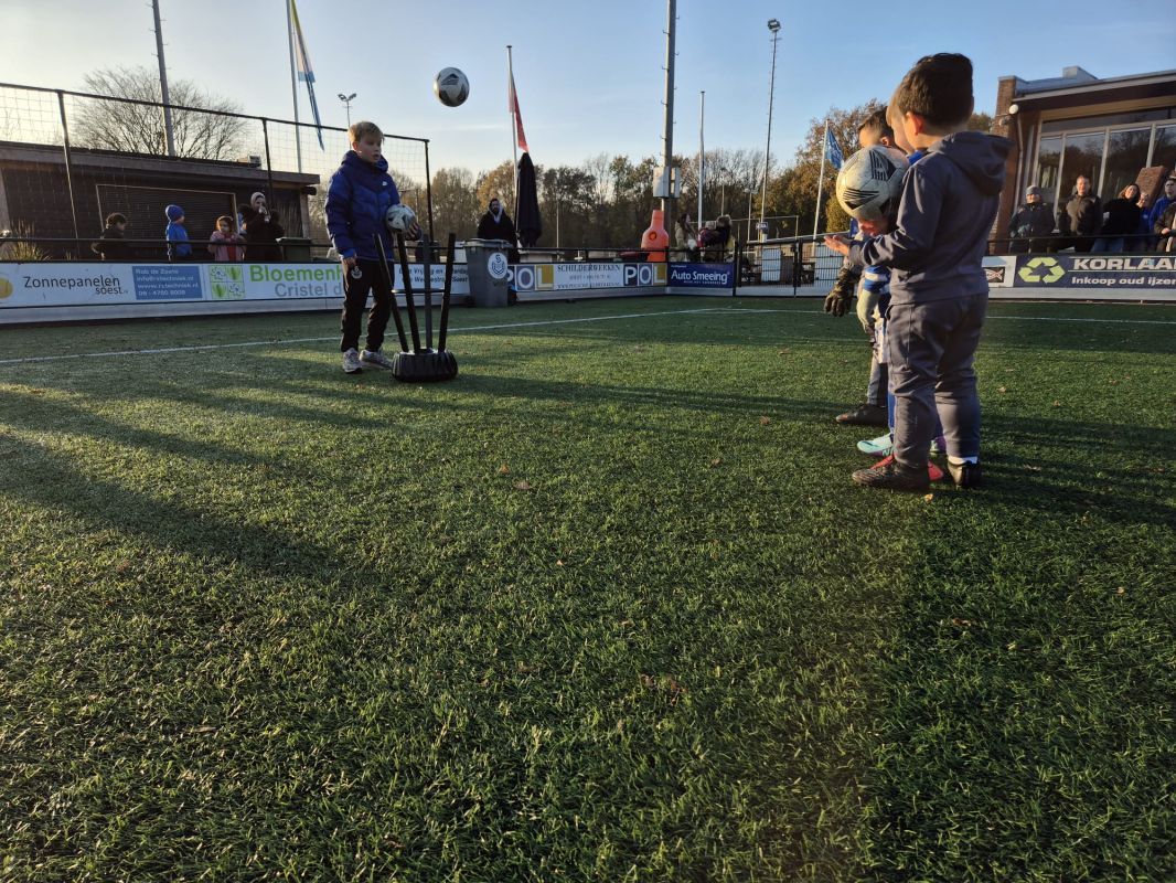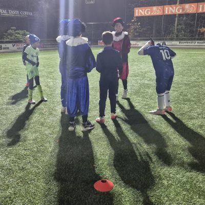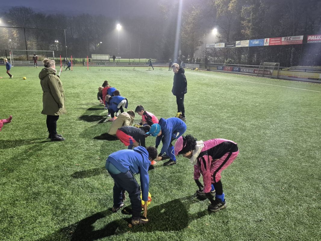 Dit jaar had Sinterklaas ook weer een hele groep kleine hulppieten meegenomen. Zij kregen van ons een korte voetbaltraining – en in ruil daarvoor gaven zij ons een echte Pieten-training, compleet met springen, rennen en slalommen.