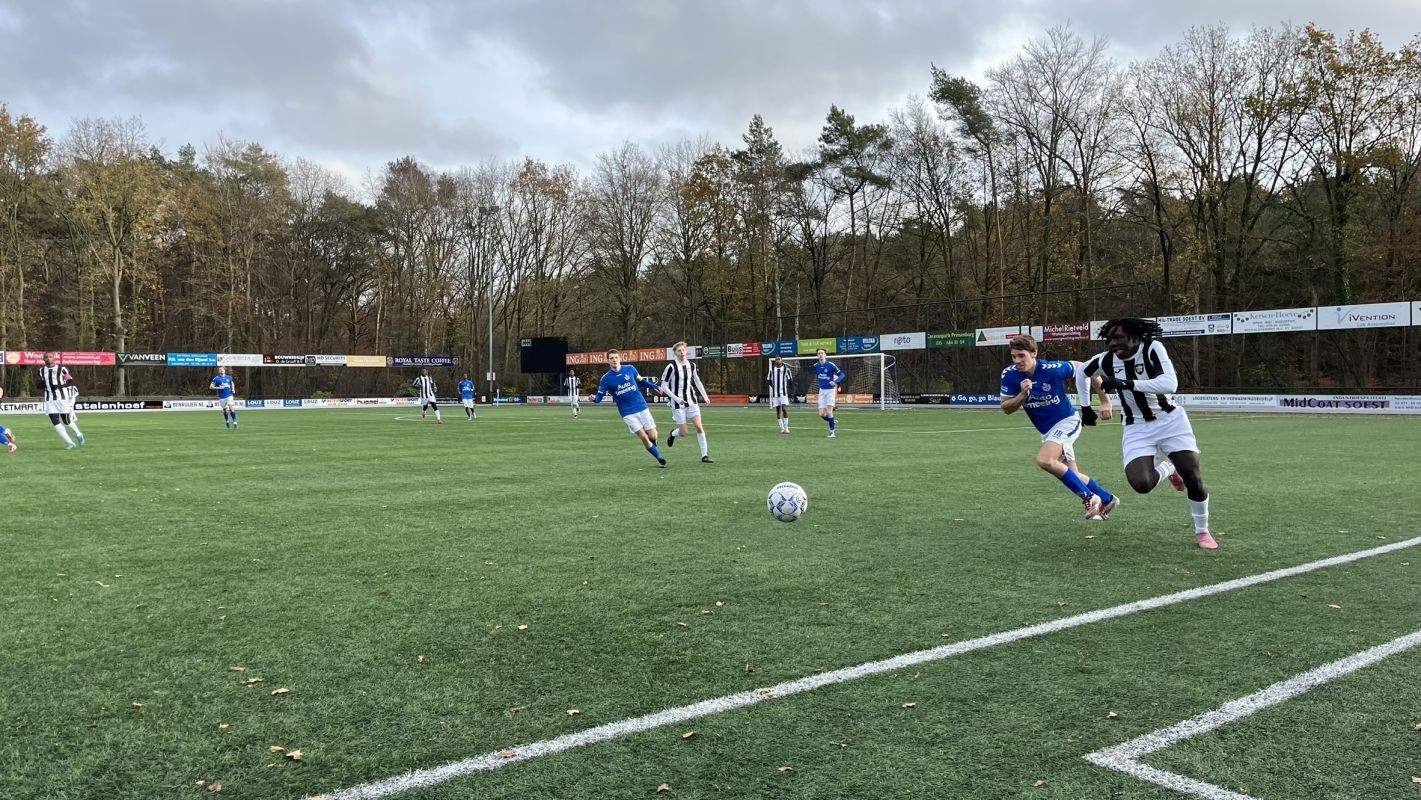 Nog twee wedstrijden te gaan voor de winterstop. Voor de O23-1 van Soest stond er vandaag slechts één opdracht op het programma, winnen van Forza uit Almere om zo zicht te houden op promotie naar de 2e divisie. Om 12.15 uur werd er afgetrapt aan de Bosstraat, waar Soest meteen het initiatief naar zich toe trok. De thuisploeg speelde geconcentreerd en verzorgd voetbal en al in de 7e minuut was het raak. Prince rondde een scherpe voorzet van Romano fraai af, 1-0. Zeven minuten later sloeg Prince opnieuw toe, dit keer na een assist van Boaz, 2-0. Forza werd af en toe gevaarlijk, maar Soest had duidelijk de overhand. Na een half uur spelen beloonde Boaz zijn sterke optreden met een doelpunt. Na een slimme pass van Prince tikte hij de 3-0 binnen.