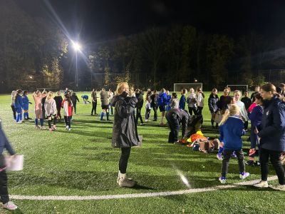 Het was weer een genot om te zien hoe fanatiek, leergierig en enthousiast de meiden elke week op het veld stonden. De reeks werd op de laatste avond feestelijk afgesloten in de kantine, waar iedereen werd getrakteerd op warme chocolademelk en pepernoten.