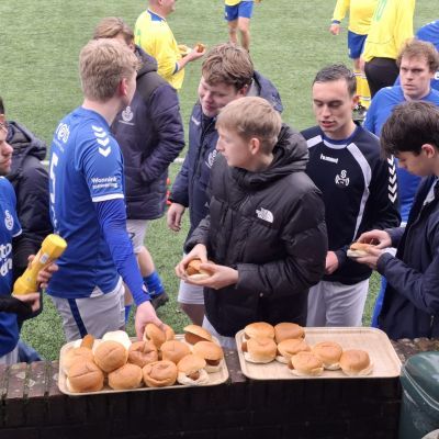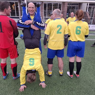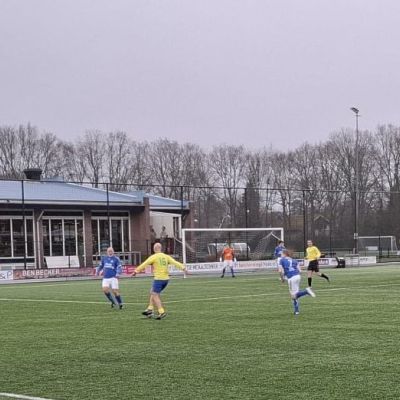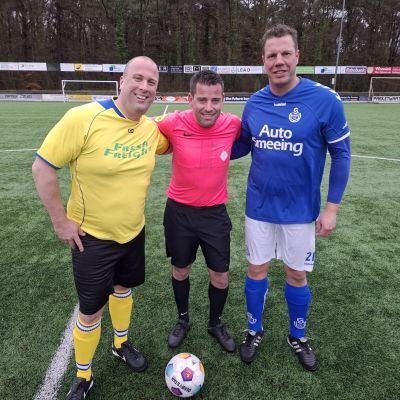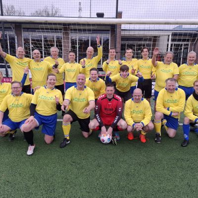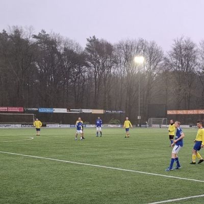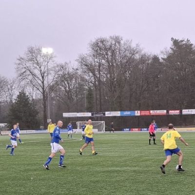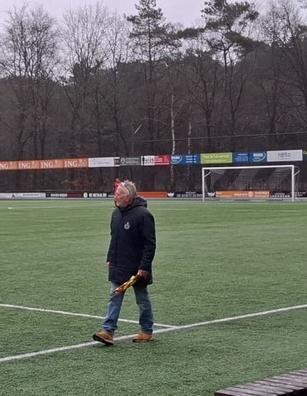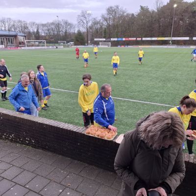 Dat is maar goed ook, want de wedstrijd is niet meer dan een opwarmer voor het jaar dat voor ons ligt. Dat neemt niet weg dat de spelers énbegeleiders hun taak uiterst serieus nemen én dat er veel mooie goals te bewonderen zijn. De trainers wonnen hun wedstrijd met 3-5. Het scoreverloop leest u onderaan dit verslag. Vermeldenswaard is dat Olaf van de Grift het doel van de bestuurders verdedigde en dat zijn zoon Kay dat één helft bij de trainers deed. Nog meer vader/zoon-momenten. André Hooft stond met zijn zoons Luc, Bart en Rik in één team. De laatste keer dat dit kwartet samen in het veld stond was bij een familietoernooi ergens in de 'zero's'. Leo Rauch en Onno Hoorn lieten zich vrijwillig twee keer 35 minuten natregenen omdat zij als assistent-scheidsrechter hun aandeel aan deze wedstrijd wilden leveren. Chapeau!!