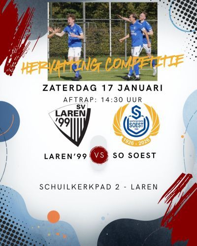 Zaterdag hervat SO Soest 1 de competitie in en tegen Laren. Kan Soest de goede vorm van voor de winterstop, waarin koploper Hooglanderveen op 1-1 werd gehouden, doorzetten? Kom zelf kijken. De aftrap in het Gooische dorp is om 14:30 uur.