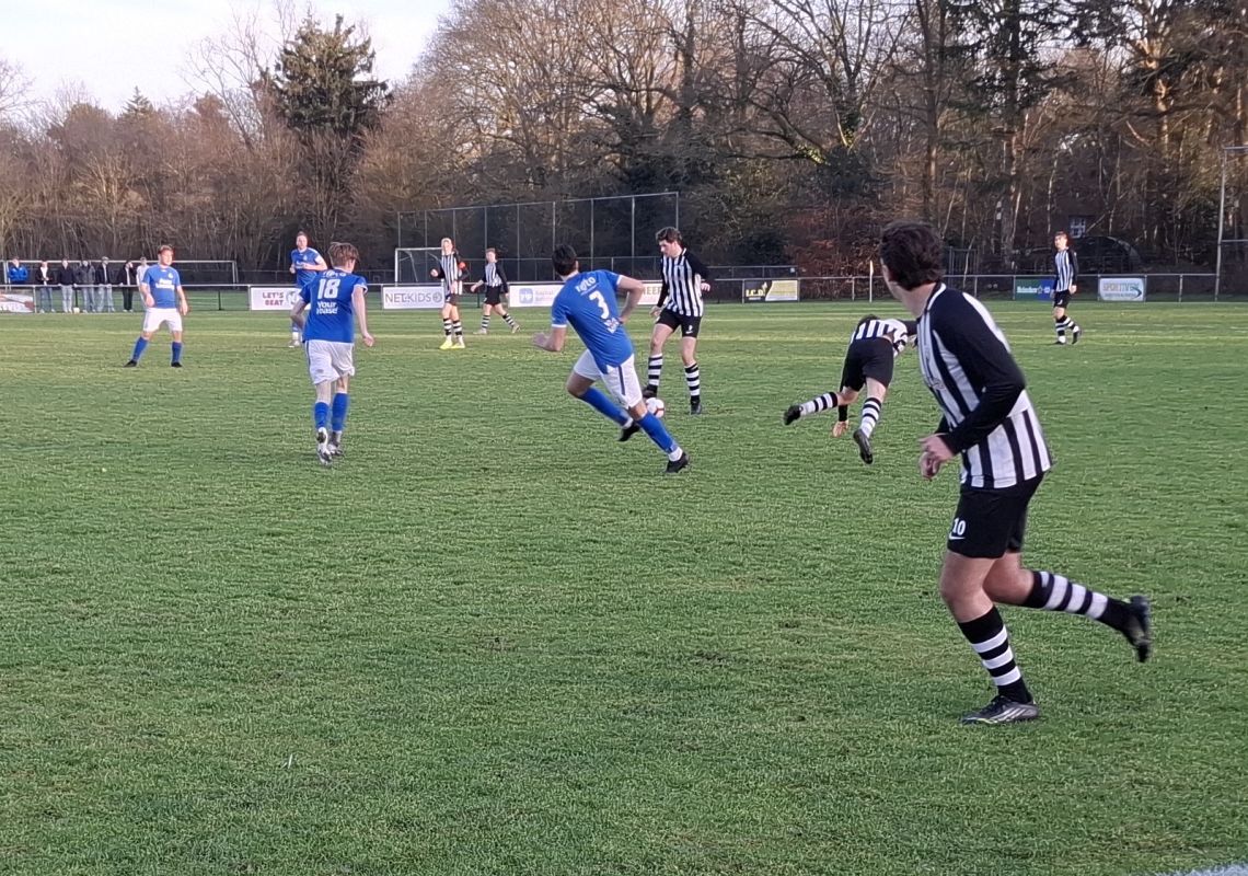 Vijf minuten later was het aan de andere kant wel raak. Een vrije trap van Laren viel over de Soester defensie heen en bij de tweede paal stond een Larense aanvaller volledig vrij om de bal binnen te koppen: 1-0. Met die stand leek ook de rust te worden gehaald, maar vlak voor het rustsignaal herpakte SO Soest zich alsnog. Vanuit een aanval uit het boekje kwam de bal via een goede combinatie bij Tijmen Brons, die koelbloedig de 1-1 binnenschoot. Het was de eerste echt goed uitgespeelde aanval van de bezoekers, maar wel meteen raak.