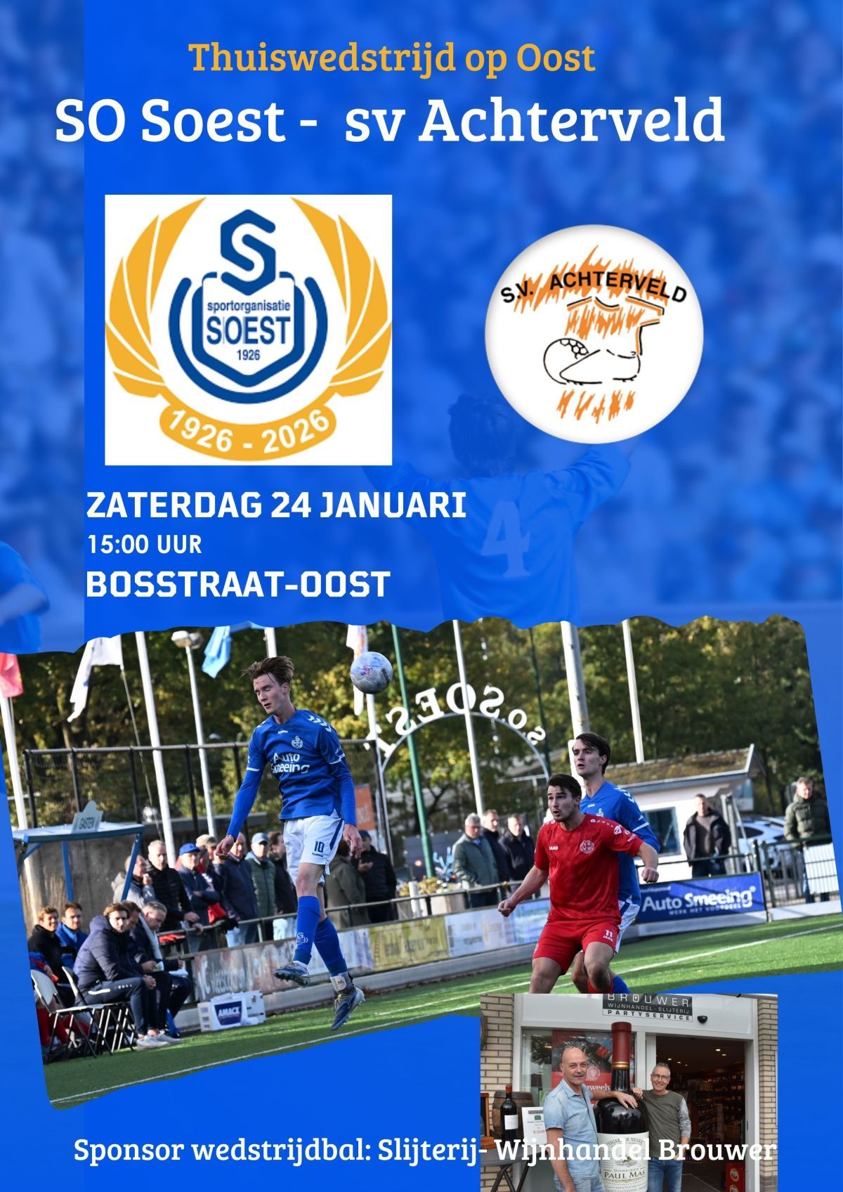 Aanstaande zaterdag, SO Soest thuis. Ons eerste elftal speelt tegen sv Achterveld. Het wordt de allereerste keer dat beide clubs elkaar -op eerste-elftalniveau- in competitieverband treffen. Aftrap is om 15 uur.