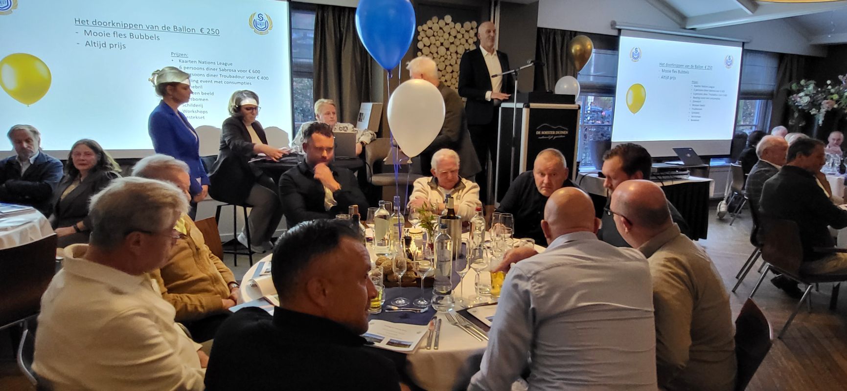 Wat is er leuker en spectaculairder dan een charity diner? Mooi gedekte tafels, meer dan honderd gasten, één hoofdveilingmeester met twee assistenten en een karrevracht aan veilingitems. Dat waren donderdagavond 12 maart de ingrediënten voor een bijzonder geslaagde avond in Restaurant De Soester Duinen ter gelegenheid van het 100-jarig jubileum van SO Soest.