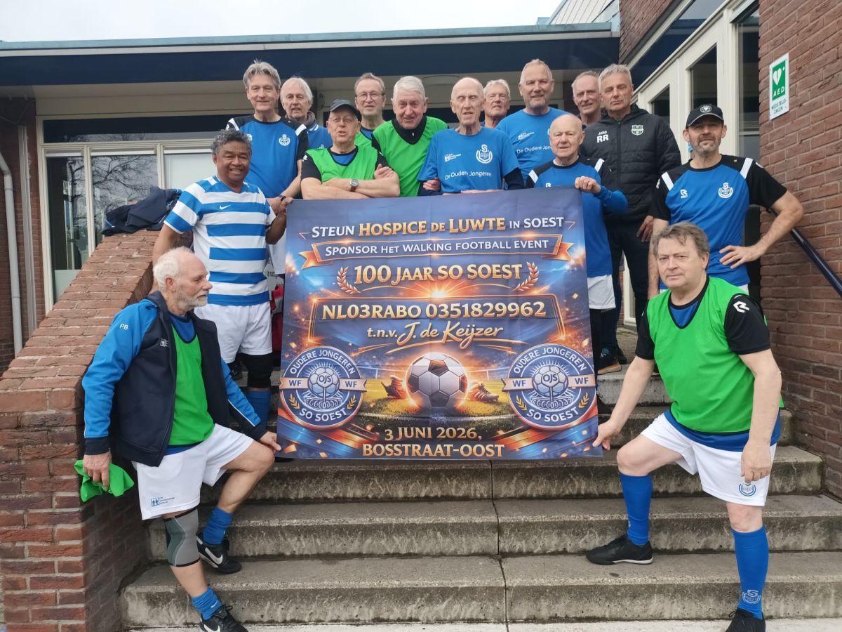 Dit is zo’n moment. Tijdens het Walking Football Event 2026 - 100 jaar SO Soest verbinden wij onze passie voor voetbal aan een doel dat ons allemaal raakt: Hospice De Luwte in Soest.