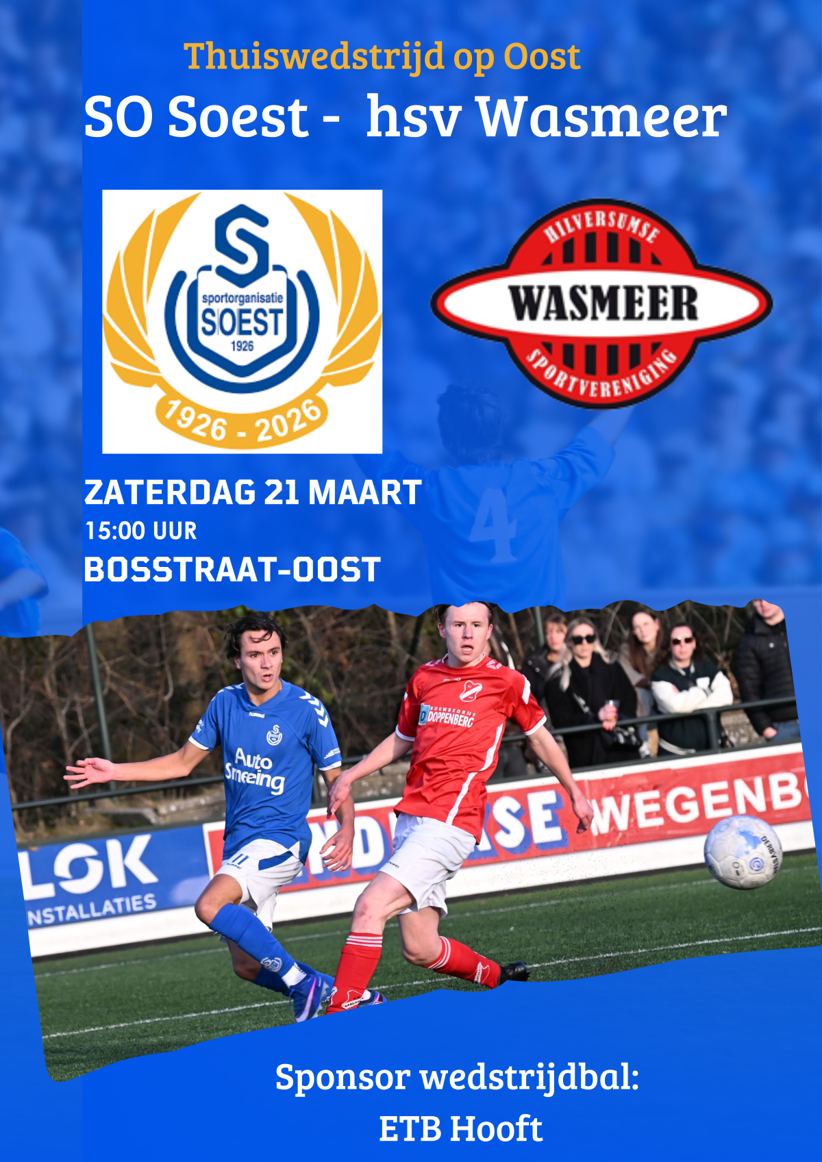 Aanstaande zaterdag speelt SO Soest de thuiswedstrijd tegen Wasmeer. Balsponsor is ETB Hooft (waarvoor hartelijk dank aan Otto Hooft).