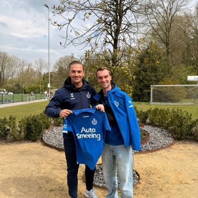 Onderstaand ziet u de foto’s waarop Milan de Jong namens de technische commissie de spelers het blauwe shirt van hoofdsponsor Auto Smeeing overhandigt.