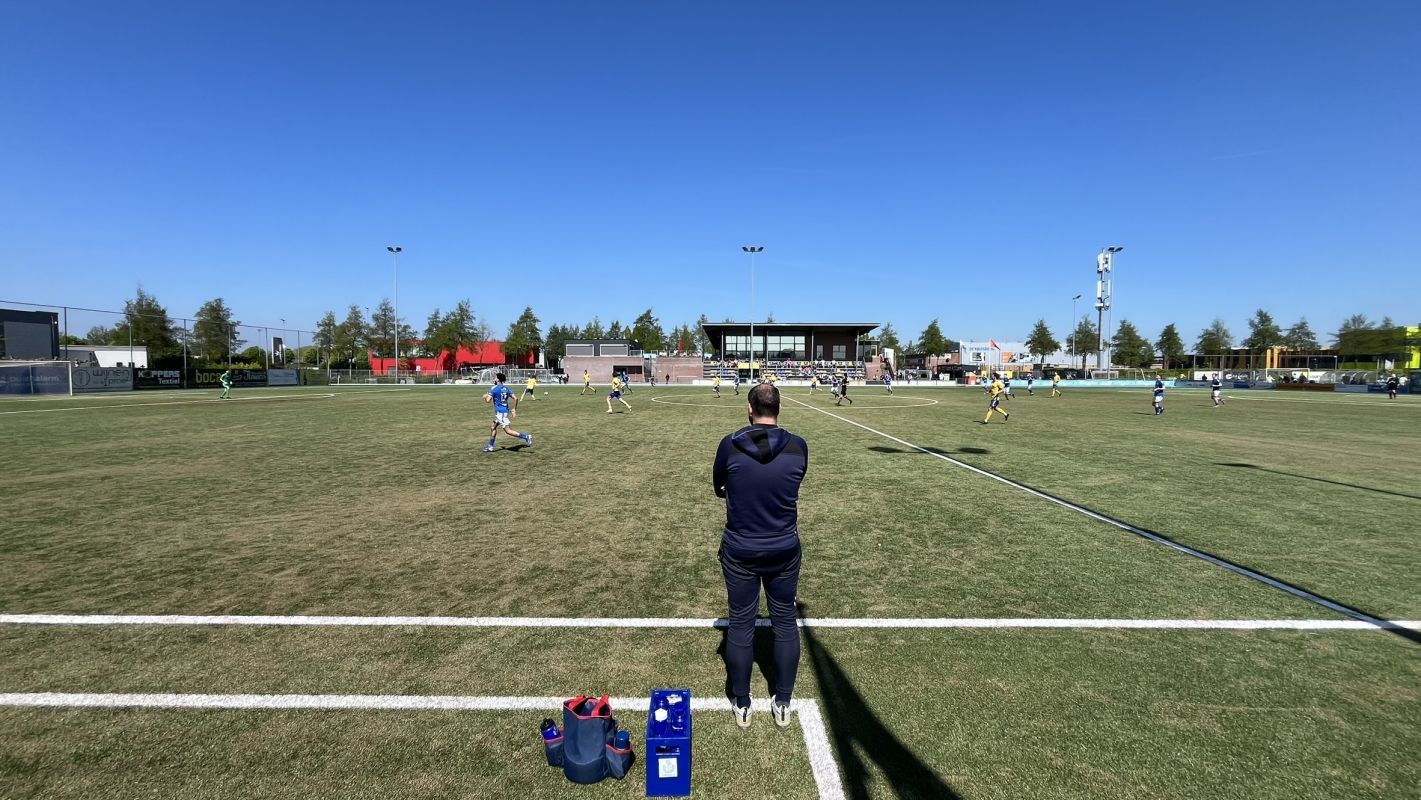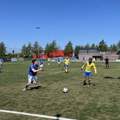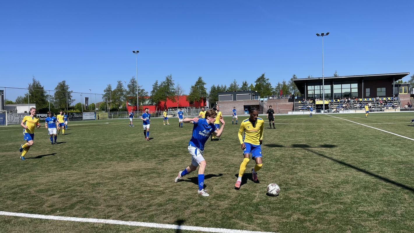 Soest begon overtuigend aan het duel en zette de thuisploeg direct onder druk. Dat resulteerde al in de vierde minuut in de openingstreffer. Na goed voorbereidend werk van Pelle kon Boaz eenvoudig de 0-1 binnenschuiven. Delta Sports herstelde zich echter snel en liet zien waarom het hoog op de ranglijst staat. Na een fase van aanhoudende druk viel in de 13e minuut de gelijkmaker, 1-1. In het vervolg van de eerste helft bleef Soest de gevaarlijkste ploeg. Sven was dicht bij een doelpunt met een fraaie omhaal en ook een kopbal op de lat onderstreepte het overwicht van de bezoekers. Gescoord werd er echter niet meer voor rust.