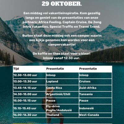 Geïnteresseerde reislustigen kunnen zich aanmelden voor de Inspiratiemiddag via de website www.vxinspiratiemiddag.nl .