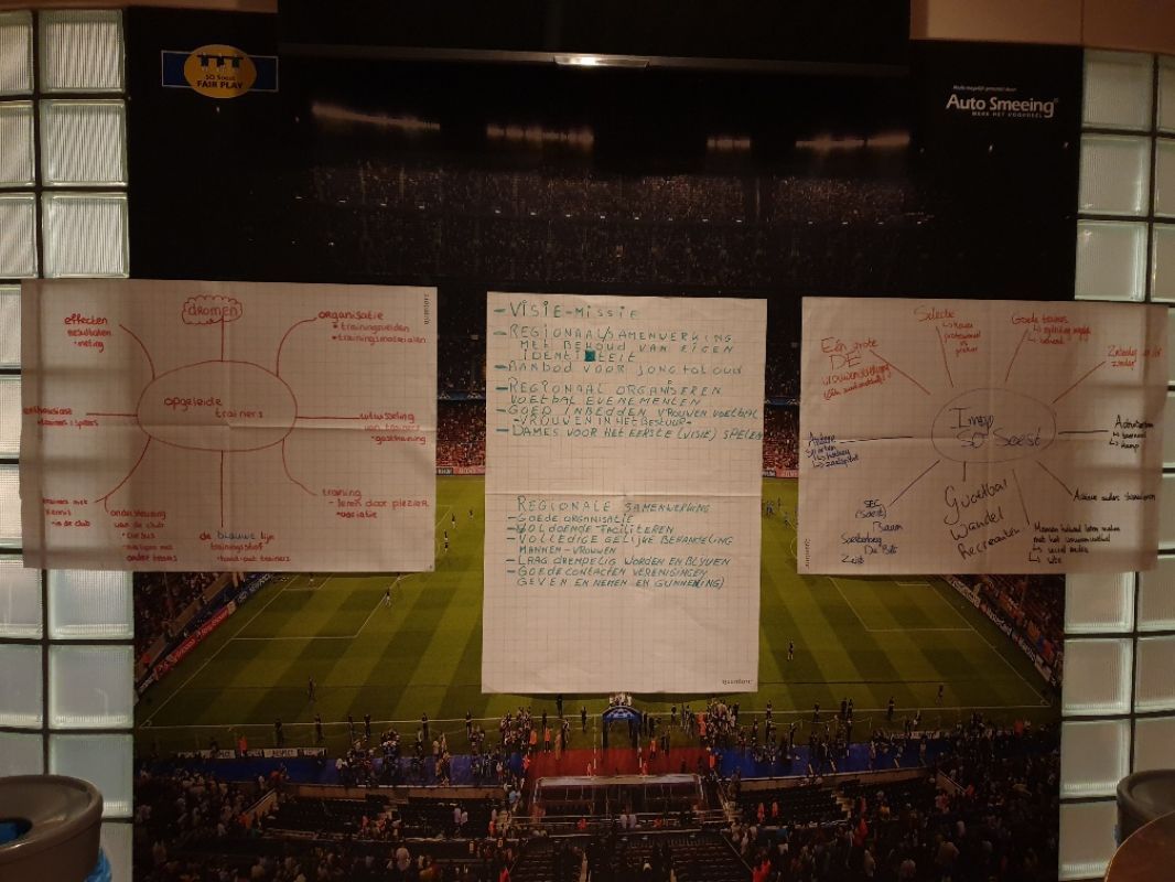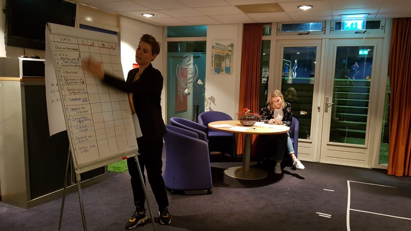 Eerder heeft u op de website kunnen lezen dat SO Soest meedoet aan het challengeprogramma van de KNVB ten aanzien van het vrouwen- en meisjesvoetbal. Op maandag 27 januari waren maar liefst 18 genodigden aanwezig om een steentje bij te dragen aan de eerste analyse t.a.v. het vrouwen- en meisjesvoetbal. Speelsters van de vrouwen en uit de jeugd, trainers, bestuursleden, wedstrijdsecretarissen en de HJO's waren aanwezig. Deze interactieve avond werd door twee medewerksters van de KNVB gebruikt om inzicht te krijgen van het reilen en zeilen bij SO Soest. Op 12 punten werd er gevraagd hoe de aanwezige groep er naar keek: van visie tot aan opleidingsmogelijkheden voor trainers, maar ook de accommodatie werd stevig onder de loep genomen. Op het moment van schrijven van dit stuk is het analyserapport nagenoeg klaar en zal de eerder voorgestelde werkgroep dit ontvangen van de KNVB. Vanuit dit rapport gaan 3 kernthema's gekozen worden en zullen die onderwerpen verder uitgewerkt gaan worden. Zodra er meer bekend is zullen wij u natuurlijk via dit medium op de hoogte brengen. Wordt vervolgd dus.