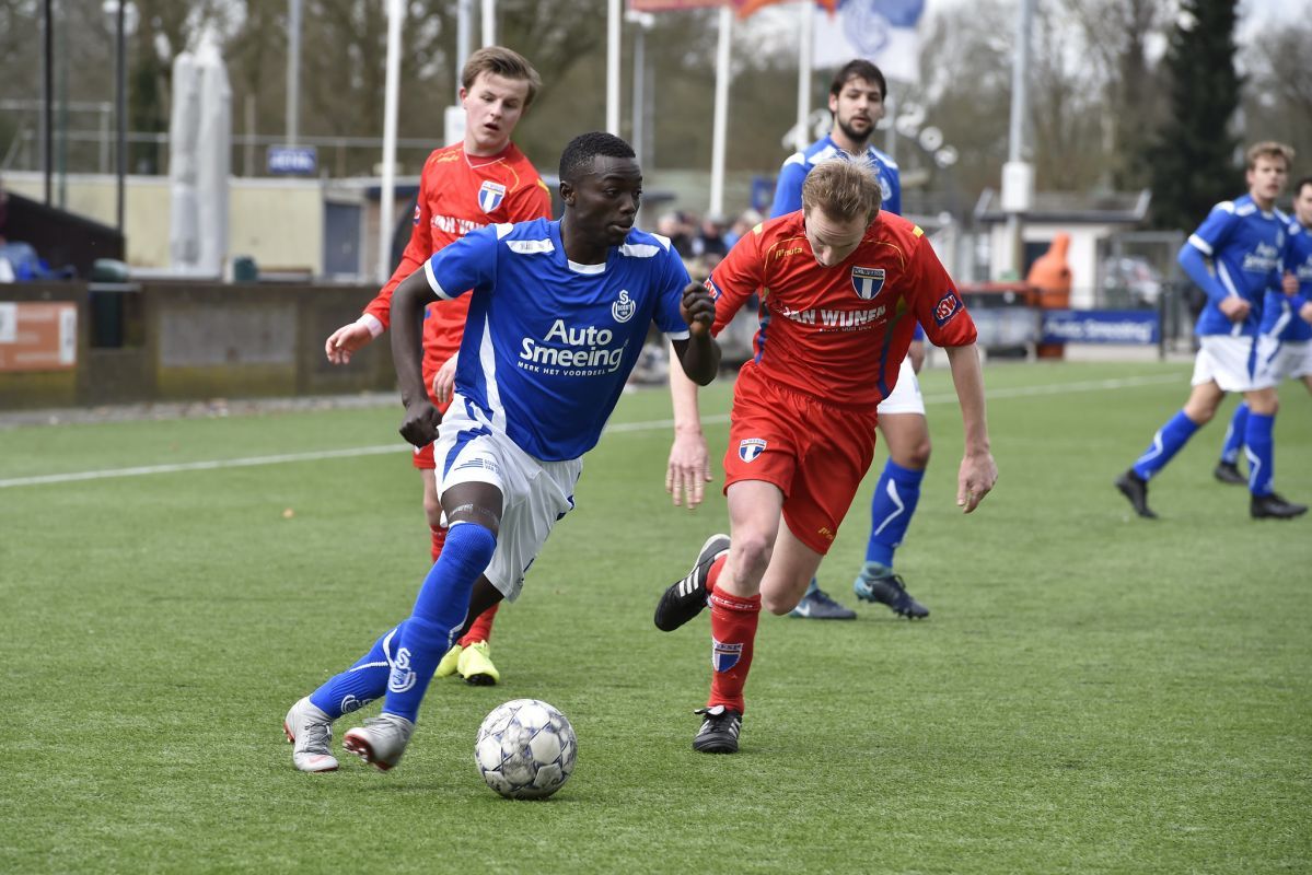 Met je 20 jaar train je jongens van 15/16. Accepteren die pubers je? ,,Je moet gewoon duidelijk zijn en grenzen aangeven, dan gaat het prima. Een geintje maken mag altijd als het maar niet ten koste gaat van het voetbal. We doen het goed. In de eerste seizoenshelft zijn we als derde geëindigd. Op dit moment staan we met 9 uit 3 bovenaan. Het is een getalenteerde groep, er zitten jongens bij die over een paar jaar het niveau van het eerste kunnen halen.”
