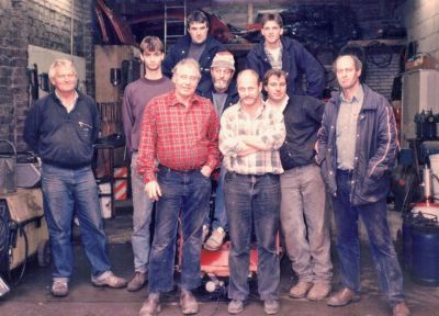 Een bijzondere foto die in het boek is opgenomen is het ‘statieportret’ van de Gebr. Beijer in de loods in het zandgat aan de Beukenlaan. Een beeld dat niet zou misstaan in de serie ‘The Sopranos’. Jeroen moet hard lachen om de vergelijking. ,,Deze Beijer-mannen waren een stukje liever.”