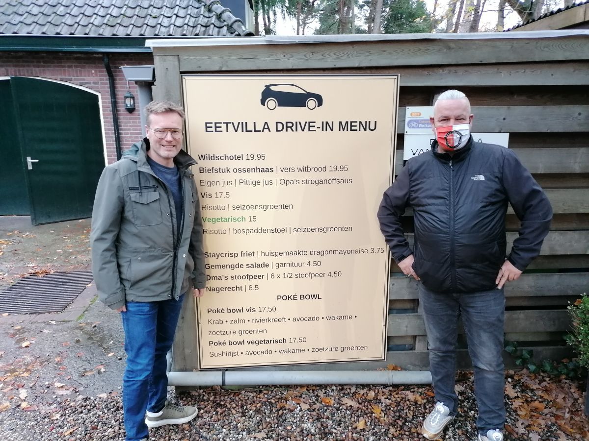 Afhalen bij de Eetvilla kan zeven dagen in week. Van 16 tot 20 uur kan er gekozen worden uit een menukaart die weliswaar niet zo uitgebreid is als normaal, maar wel kwaliteit en korte wachttijd waarborgt. Het systeem werkt net als bij een bekend fastfood-restaurant. Sebastian: ,,Kom naar de Eetvilla. Bestel buiten aan de desk uw gerechten. Betaal contactloos. Rij door en parkeer uw auto en wacht in de auto op uw bestelling. Simpeler kan het niet. Voor de goede orde; de gerechten gaan warm mee en bestellingen kunnen niet vooraf gereserveerd worden. De biefstuk wordt medium-rare gebakken en zijn van het Simmentaler rund. Een mooi koeienras dat voor malse en smaakvolle biefstukken zorgt.