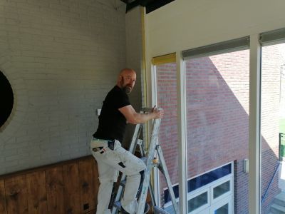 Frans van den Berg en Roeland van Noort van FR Schilderwerken (ook bekend als vendelier van SO Soest) zijn maandagmorgen gestart met hun schildersklus voor 'het nieuwe jasje' van ons clubhuis. Frans van den Berg vertelt over de manier van werken van FR Schilderwerken: ,,Elk project is voor ons een uitdaging waarin wij vakmanschap, professionaliteit en service combineren. Wij willen alleen het allerbeste resultaat voor onze klant realiseren. Een klus voor SO Soest is ons uit het hart gegrepen. Ik heb zelf heel wat bijzonder leuke uren mogen beleven bij deze prachtige club. Het is mooi dat wij nu bij kunnen dragen aan de metamorfose van het clubhuis. Het wordt prachtig.”