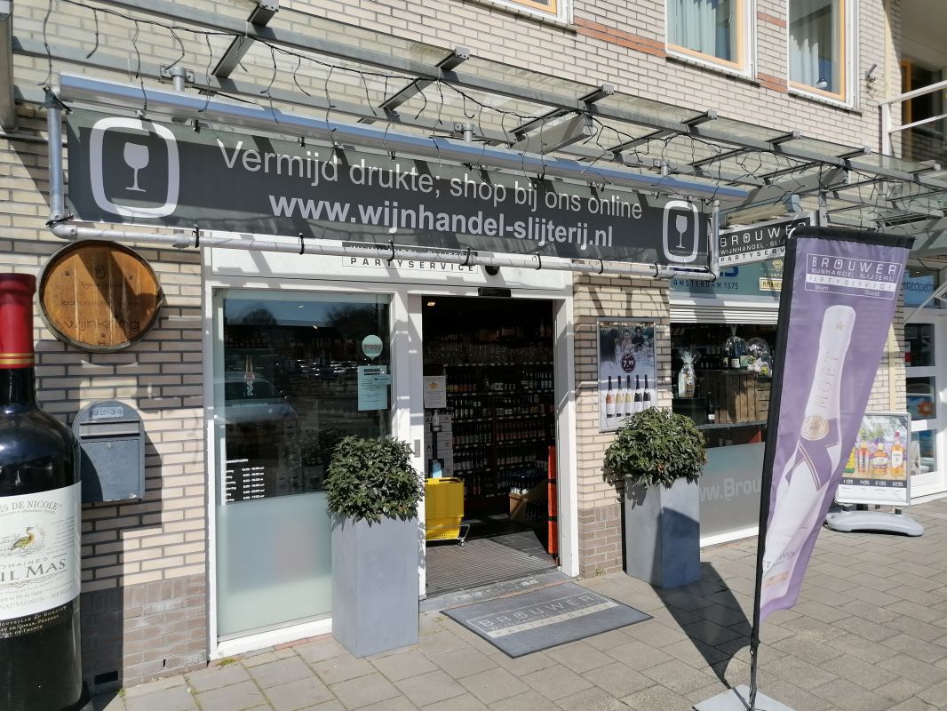 Wijnhandel-slijterij Brouwer: Plein van Zuid 32. Telefoon: 035-6014014 https://www.wijnhandel-slijterij.nl/