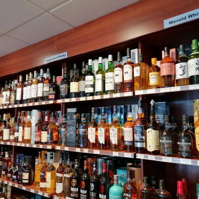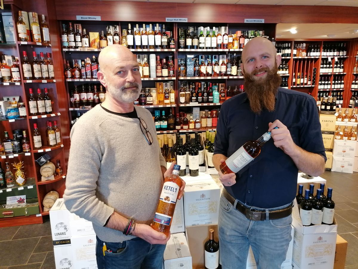 Robbert Burema knikt bevestigend bij de woorden van zijn collega. Vorig jaar heeft de sympathieke en ervaren slijter Robbert zijn entree gemaakt bij slijterij Brouwer. Met zijn stoere baard valt hij op, maar zijn kennis over onder meer whiskey en whisky (ja daar zit verschil in) is bewonderenswaardig. Hij selecteert twaalf keer per jaar de whisky/whiskey van de maand uit het omvangrijke assortiment (dat ‘een muur’ beslaat). Robbert: ,,Deze maand is dat de COPPER DOG. Deze whisky wordt gemaakt in het historische dorpje Craigellachie. Deze whisky wordt gekenmerkt door een fruitig karakter, aangevuld met invloeden van kruiden en honing.”