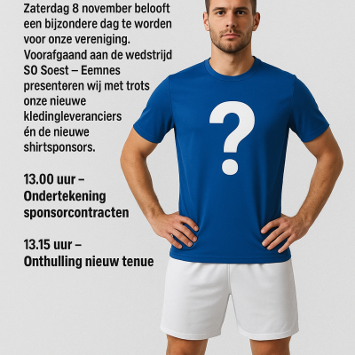 Zaterdag 8 november worden, voorafgaand aan de wedstrijd SO Soest – Eemnes, de nieuwe kledingleveranciers én de shirtsponsors voor het...