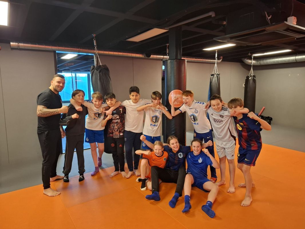 JO12-1 trots op nieuwe trainingstenues dankzij sponsor Boomhut Boris