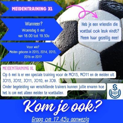 Ben jij een meisje, geboren in 2013, 2014, 2015, 2016 of 2017 en wil je weten hoe het is om met andere meiden te voetballen? Kom dan meetrainen op...