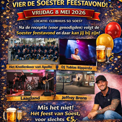 Verkoop kaarten voor deze feestavond (direct ná de officiele receptie) gaat zaterdag 21 maart van start Op vrijdag 8 mei 2026 opnieuw...