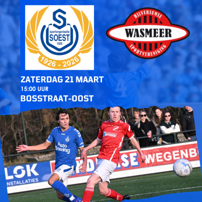 Aanstaande zaterdag speelt SO Soest de thuiswedstrijd tegen Wasmeer. Balsponsor is ETB Hooft (waarvoor hartelijk dank aan Otto Hooft). De wedstrijd...